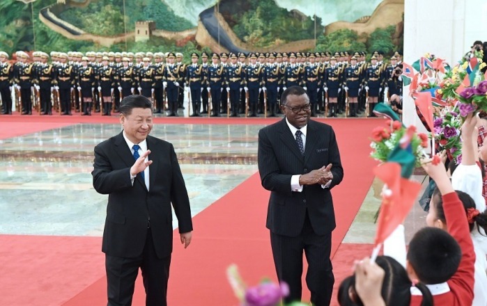 3月29日,国家主席习近平在北京人民大会堂同纳米比亚总统根哥布举行会谈。这是会谈前,习近平在人民大会堂北大厅为根哥布举行欢迎仪式。摄影/饶爱民