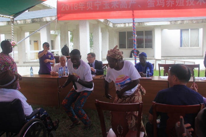 6月23日下午,2018年贝宁玉米高产、蛋鸡养殖技术海外培训班结业典礼在贝宁赛美市举行。中国农业农村部对外经济合作中心副主任李洪涛、贝宁农牧渔业部培训司司长阿根、贝宁外交部代表乌苏、贝宁唯美省农业厅厅长库布乐努等出席结业典礼并向学员颁发证书。