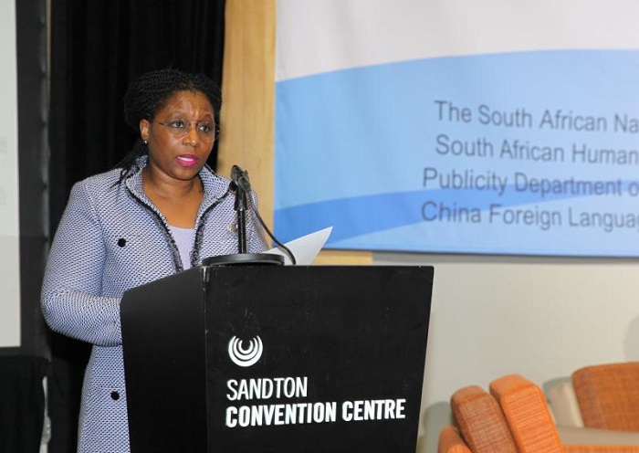 南非公共事务管理部部长艾恩达·德罗德罗在闭幕大会上发表演讲(摄影/李建国)