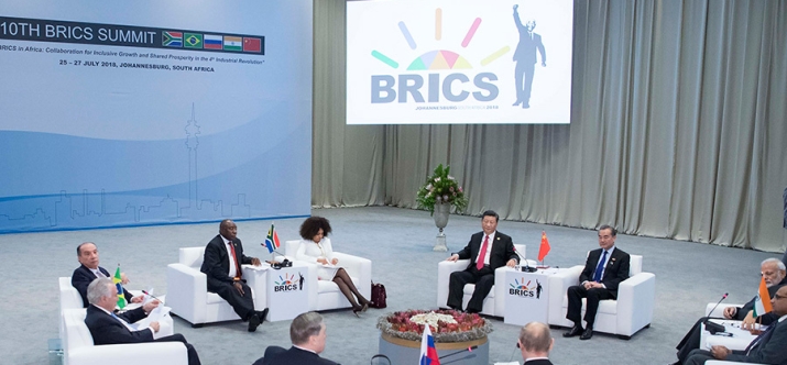 纪念金砖国家领导人会晤10周年非正式会议27日在南非约翰内斯堡举行。中国国家主席习近平、南非总统拉马福萨、巴西总统特梅尔、俄罗斯总统普京、印度总理莫迪出席。