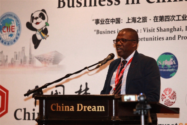 南非小企业部代理总司长Mojalefa Mohoto在会上发言支持中小企业更多地参与中南经贸交流