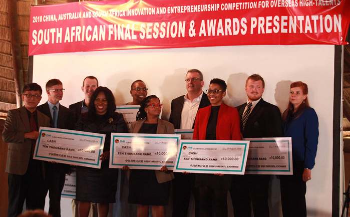 2018中澳南海外创新创业大赛南非赛区颁奖典礼21日在南非豪登省科技产业园举行。南非赛区评选出的15个优胜奖项目获得组委会颁发的证书与奖金。获奖代表将作为南非赛区的优胜项目参加9月份在杭州举行的总决赛。