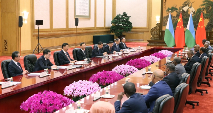 国家主席习近平2日在人民大会堂会见吉布提总统盖莱。