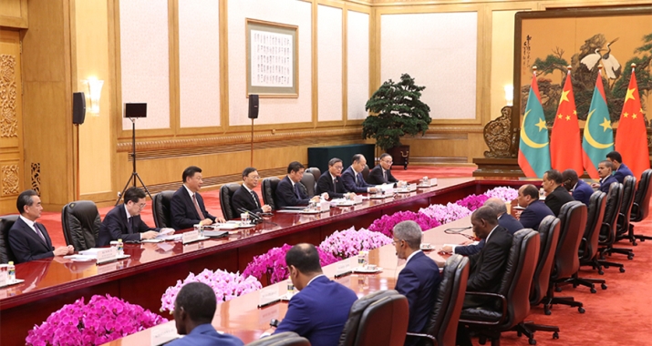 习近平强调,中毛关系是中国同非洲及发展中国家关系的典范。中方视毛方为真诚可靠的朋友和伙伴,感谢毛方在涉及中方核心利益和重大关切的问题上始终给予中方坚定支持,将继续支持毛方维护稳定、谋求发展的努力。双方要以共建“一带一路”为新起点,创新合作模式,推进基础设施等重点领域合作,增强毛里塔尼亚自主发展能力。我们赞赏总统先生为地区反恐维稳事业发挥的积极作用,愿通过多种方式同萨赫勒五国集团成员国开展和平安全合作。