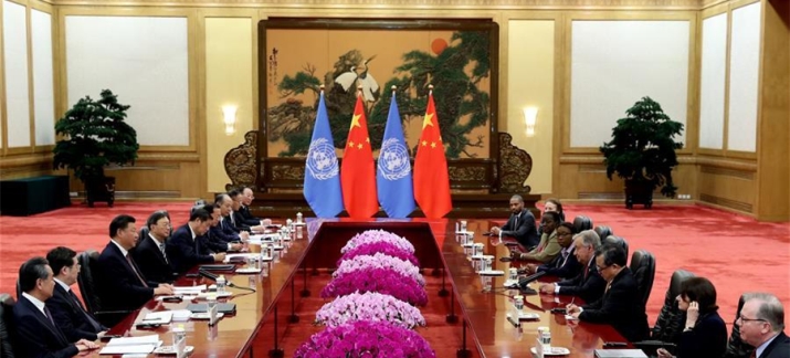 国家主席习近平2日在人民大会堂会见联合国秘书长古特雷斯。