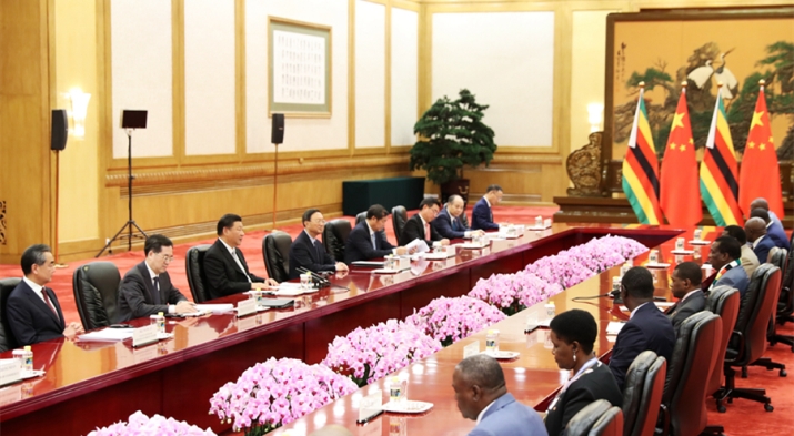 9月5日,国家主席习近平在北京人民大会堂会见津巴布韦总统姆南加古瓦 (摄影/黄敬文)