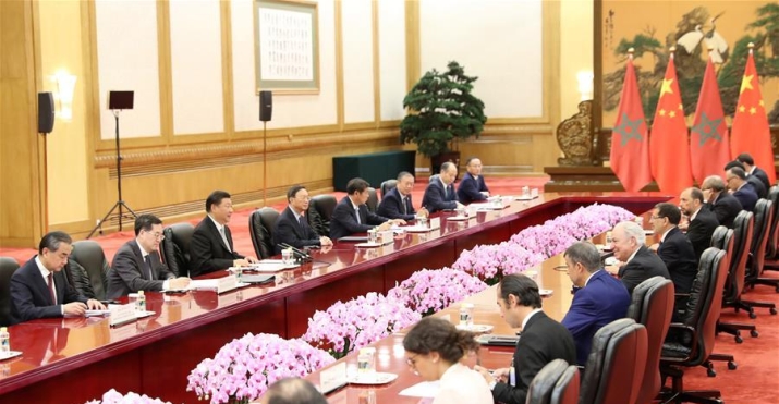 习近平指出,中摩交往源远流长,早在14世纪,摩洛哥著名旅行家伊本·白图泰就来到中国,沟通了中国与非洲和阿拉伯世界的联系。今年是中摩建交60周年,中方愿以此为新起点,同摩方一道努力,推动中摩战略伙伴关系取得新的、更大发展。中方将一如既往地坚定支持摩方维护国家稳定、实现经济社会发展的努力,视摩方为共建“一带一路”的重要合作伙伴。双方要在重大国际和地区问题上加强沟通和协调,维护两国和发展中国家共同利益。