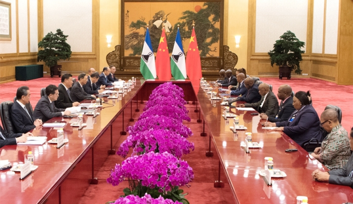 9月6日,国家主席习近平在北京人民大会堂会见莱索托首相塔巴内 (摄影/饶爱民)