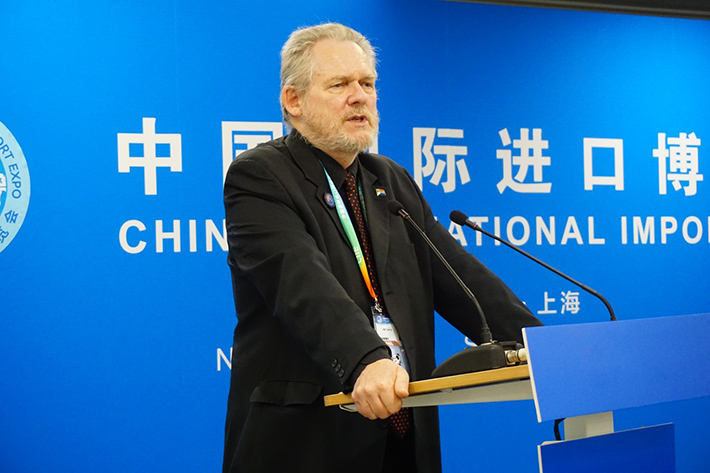 在上海参加首届中国国际进口博览会的南非贸易和工业部长罗布•戴维斯表示,他希望首届中国国际进口博览会能够缩小中国与非洲之间的贸易逆差,同时,十分期待具有高附加值的南非商品能够打开中国市场。