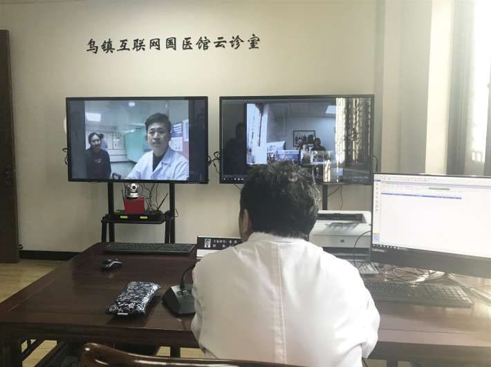 主诊医师张洪在乌镇互联网国医馆与泰国中医远程连线(主办方提供)