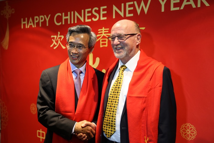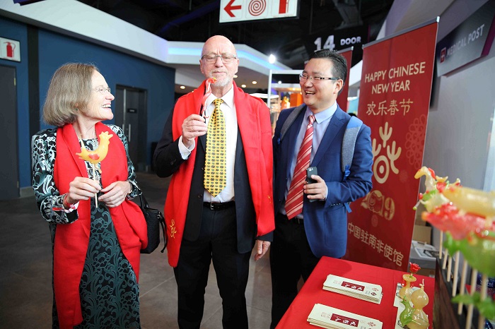 中国驻南非大使林松添,南非政府代表、旅游部长哈内科姆向中国人民以及在南华人致以新春祝福和节日问候。 (中国与非洲记者李建国 摄)
