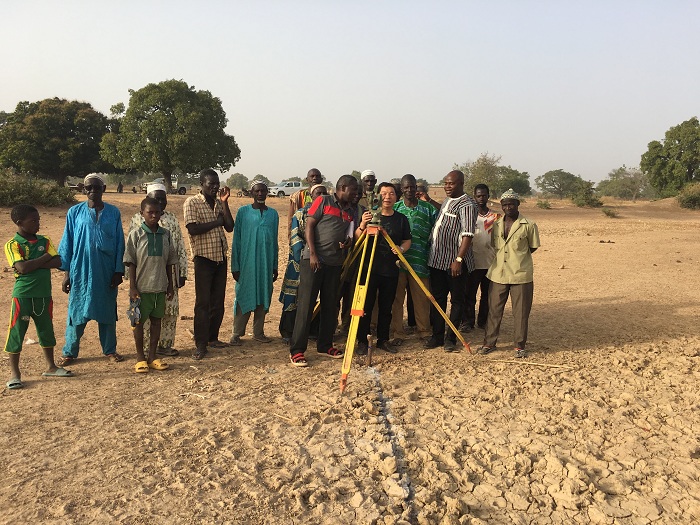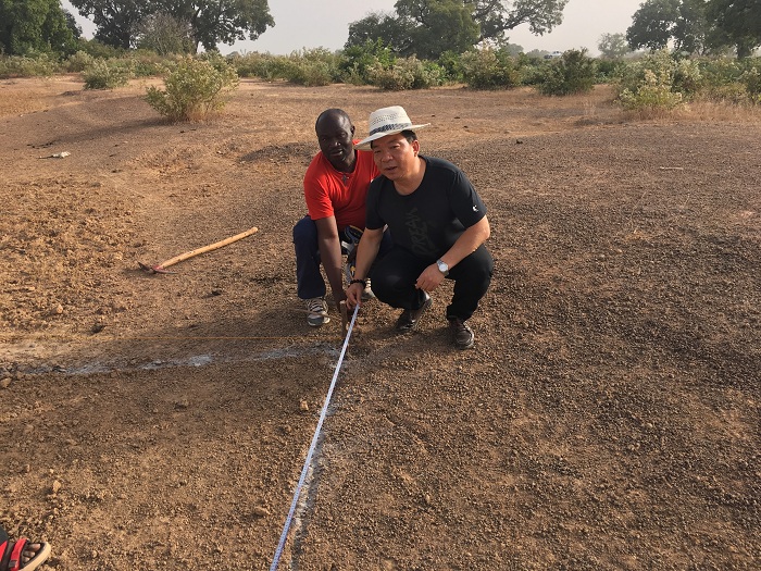 根据当地的地形地貌特征,梁小平带领专家组与当地技术人员进行了勘探、测量、设计等一系列准备工作,最终决定在Centre-ouest大区Nariou村洼地水稻项目点进行蓄水坝的建设。经过41天紧锣密鼓的施工,蓄水坝于2019年2月3日正式完工,可供50公顷洼地水稻实现雨季补充灌溉。