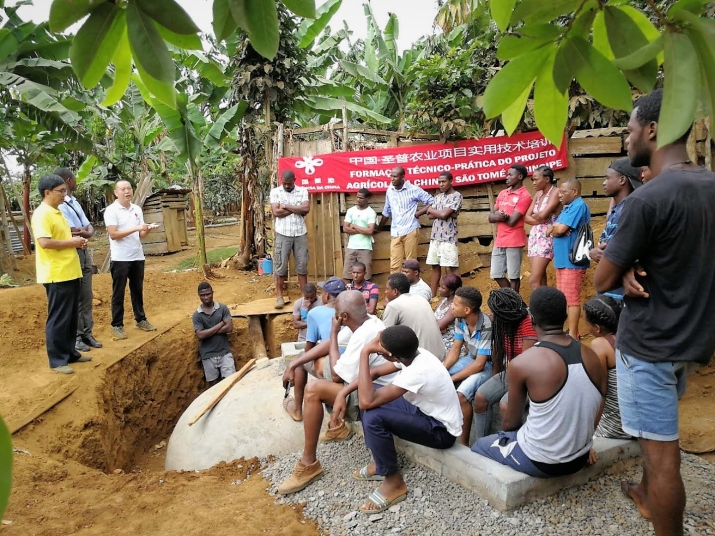 黄健是由中国农业农村部向圣多美和普林西比派出的农业专家。这一天,黄健在圣普洛巴塔县修建的第一口沼气池顺利通气,正式投入使用。