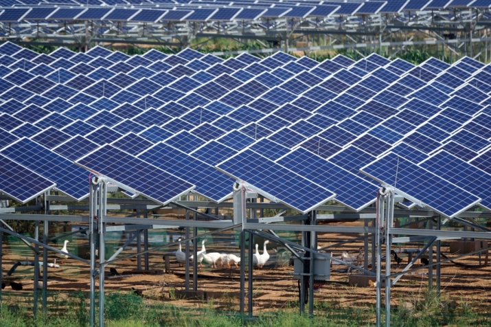 亿利光伏电站实现了“板上发电、板间种植、板下养殖”的立体化的新型产业模式(亿利资源集团提供)
