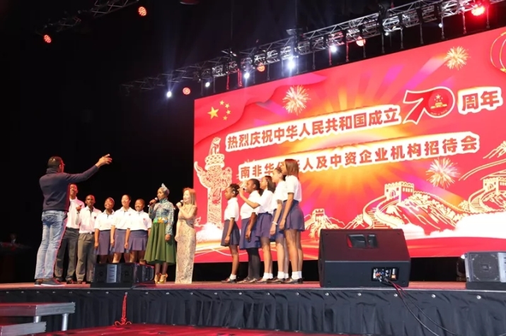 9月23日晚,南非行政首都比勒陀利亚地标性建筑时代广场张灯结彩,欢声笑语。大红灯笼和吉祥中国结为这座现代化建筑披上了喜庆的中国红,洋溢着浓浓的中国味和节日气氛。中国驻南非使馆在此隆重举行盛大的华侨华人和中资企业机构招待会,热烈庆祝中华人民共和国成立70周年。中国驻南非大使林松添出席并致辞。驻南非使馆全体外交官,旅南华人华侨、港澳台胞,中资机构、孔子学院和课堂教师、留学生、驻南央媒、华文媒体代表,以及贵州文艺演出团、福建泉州非遗艺术家等约1000人出席。