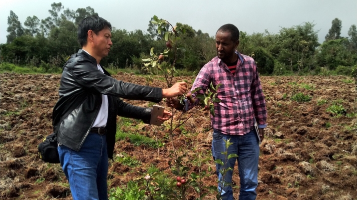 谢俊华作为果树专家,围绕埃塞俄比亚高原水果产业深入开展以苹果为主的调研、论证、规划和技术指导,推动与亚的斯大学技术学院合作建设“埃塞俄比亚国家高原水果研究发展中心”,从而整合埃塞高原水果生产技术研究资源,统筹规划埃塞高原水果区域布局,引入国外优质高原水果和先进生产管理技术,并为埃塞高原水果产业化发展提供技术和人才。水稻专家邓正锐开展水稻新品种引进栽培试验和技术示范,包括水稻育秧技术、病虫害防治技术等。畜牧专家朱振荣对埃塞俄比亚畜禽疫病发病区域和规律进行了深入调研并开展了畜禽疫病防控技术培训。蔬菜专家刘守云重点推广蔬菜大棚,开展包括播种、育苗、施肥、灌溉、病虫害防治、采收以及包装在内的技术示范和培训。此外,还有小麦专家刘建军、棉花专家李荣彪、食用菌专家郑艾宝、水产专家李树涵、农机专家赵海志,他们都坚守在各自的岗位,按期完成任务。