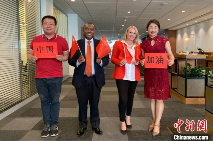 “我们和中国始终站在一起。”标准银行集团策划发展部负责人卡洛琳手举中国国旗和一张写有“加油”的红色纸张,正和其他同事用刚学的中文高喊“加油”。她说,尽管不能亲赴中国与中国人民并肩作战,但她接下来会通过各种渠道,向中国提供力所能及的帮助。“以往中国在非洲的建设发展中提供了无尽的帮助,眼下中国有难,非洲人民没有理由不伸出援手。”
