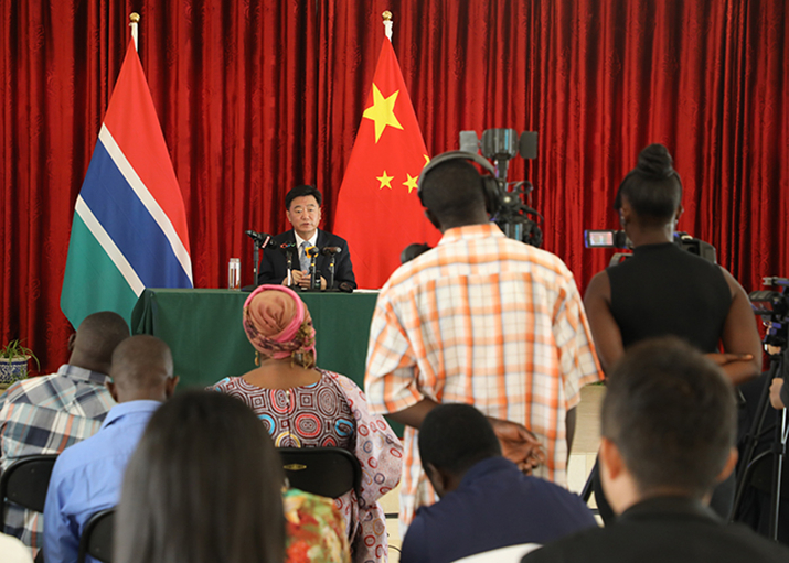 2月17日,驻冈比亚大使马建春就抗击新型冠状病毒肺炎疫情在使馆举行新闻发布会。冈首都班珠尔市市长,冈外交部、卫生部官员,冈比亚媒体联盟秘书长等参加,冈比亚国家广播电视台、QTV电视台、《冈比亚日报》、《观点报》、《旗帜报》、《自由报》、《声音报》、《新冈比亚》杂志、西岸电台、塔兰加电台、城市极限电台等十余家当地主流媒体负责人和编辑记者代表出席新闻发布会。