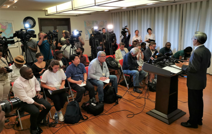 2月18日,中国驻南非大使林松添在使馆举行大型记者会,中南主流媒体和路透社等国际媒体共20多家出席。林松添回答了记者关于美国国务卿蓬佩奥首次访问非洲等问题。