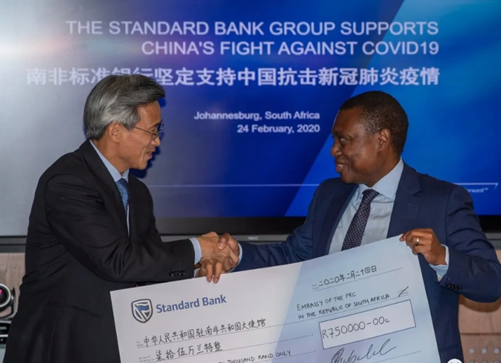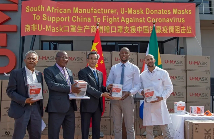 南非政府、南非非洲人国民大会、南非共产党等多次表示支持中国抗击疫情的努力。南非一些企业和组织机构积极为中国捐款、捐物。向中方捐赠了3万只口罩的USP公司负责人埃克斯坦恩说,公司受益于南中合作,坚定支持中国政府和人民抗击疫情。为协助抗击疫情,南非华侨华人筹集了防护服、医用口罩、消毒液等应急物资。使馆积极与航空公司和海关沟通协调,使抗疫物资以最快的速度运抵国内。