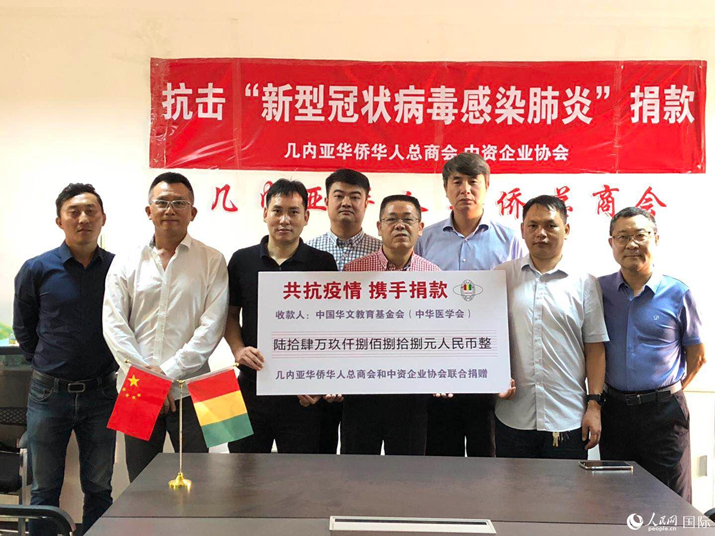 几内亚华侨华人总商会、中资企业协会联合捐款支持祖国抗击疫情(驻几内亚使馆供图)