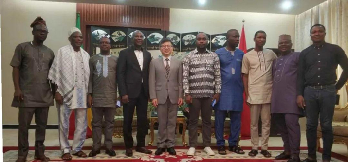 3月6日,贝中媒体友好协会来到中国驻贝宁大使馆,专程向彭惊涛大使表达对中国抗疫的支持。