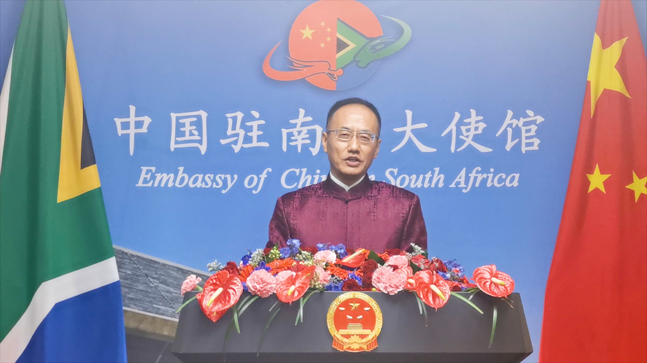 9月28日,驻南非使馆隆重举行中华人民共和国成立71周年“云”招待会暨线上开放日活动,中南各界嘉宾“云”济一堂,共庆佳节。陈晓东大使,南非政府代表、国企部部长戈尔丹出席并致辞。