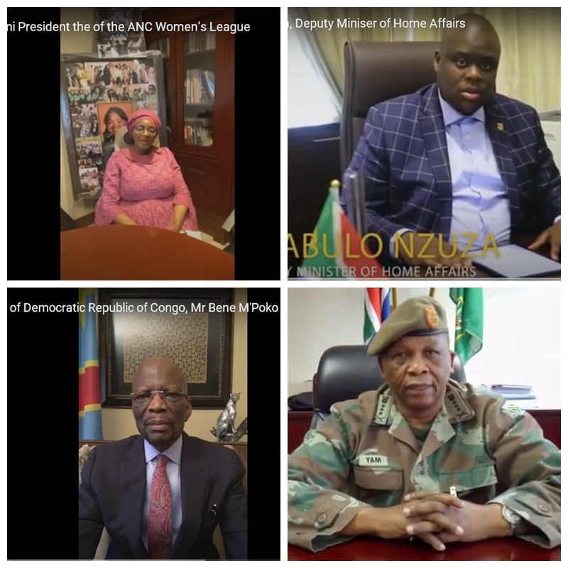 南非执政党非国大总书记马哈舒勒,执政联盟成员南非共总书记、高等教育和科技部部长恩奇曼迪,卫生部长穆凯兹,基础教育部部长莫采卡,国防军参谋长亚姆中将,警察总监斯托里上将,非国大全国执委、妇联主席德拉米尼,内政部副部长恩祖扎等南党、政、军高层及工商、智库、媒体等各界名流,驻南使团长、刚果(金)大使等各国使节,以及在南中资机构、华侨华人、留学生代表等纷纷发来祝福视频或在线点赞互动,气氛热烈、隆重、喜庆。