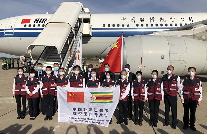 中国援助津巴布韦抗疫医疗队5月11日抵达哈拉雷机场。