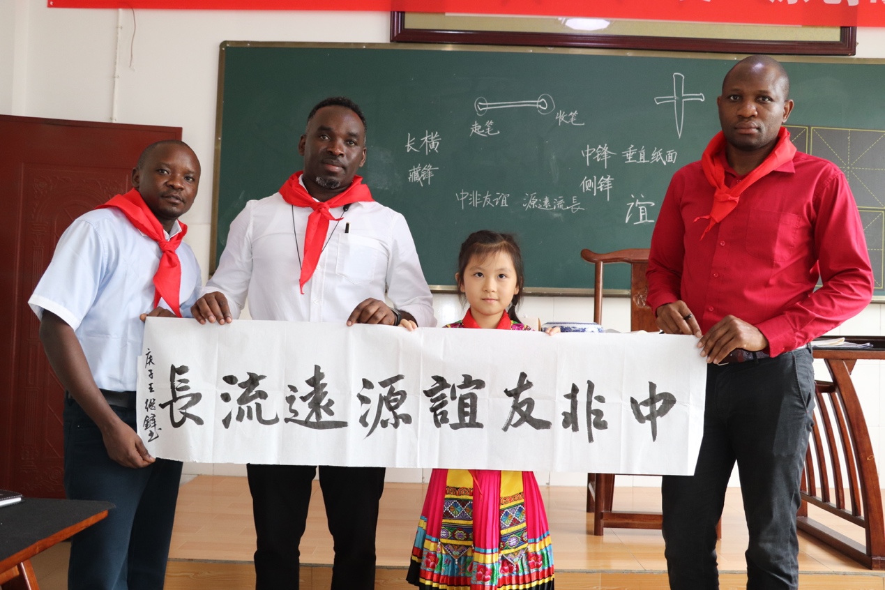 沐浴着友谊的春风,学校的面貌焕然一新,从原来的32个教学班级1600名学生扩大到了45个教学班级2000多名学生。图书室、绘画室、古筝室等功能室的配置也为学生的兴趣爱好提供了必备的物质基础。学生代表为爱非客一行展示了书法、葫芦丝、合唱等才艺,非洲嘉宾和学生们进行了有趣的互动。