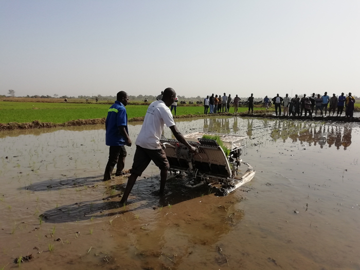 在巴马示范点和巴格雷示范点,通过大中型拖拉机、插秧机和联合收割机开展试点试验,水稻产量分别由3.2吨∕公顷和2.9吨∕公顷提高到5.8吨∕公顷和5.5吨∕公顷;在Nariou村洼地水稻产区,小型拖拉机、人力播种机和小型收割机的使用让水稻产量分别由3.0吨∕公顷和1.5吨∕公顷提高到5.2吨∕公顷和3.2吨∕公顷。