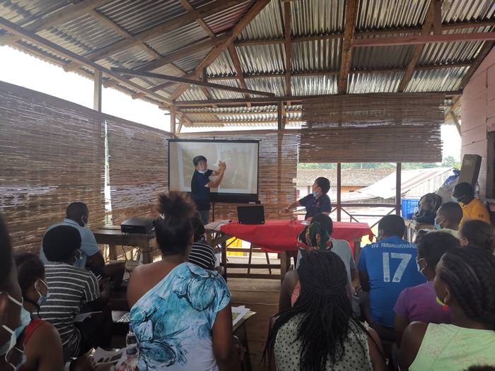 2021年12月3日,许州达在Lobata县Caldeiras社区开展玉米病虫害防控技术培训。(许州达提供)