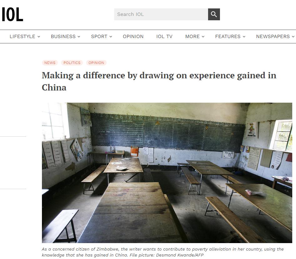 近日,南非独立在线网站发表题为《利用在中国获得的经验带来改变》的文章,作者是赣南医学院津巴布韦学生梅朱丽·奇帕托。作为一名2016年开始在中国生活的外国人,奇帕托表示,亲眼目睹了中国经济的快速增长,也学到了很多扶贫知识。中国的减贫方案应该被全世界效仿,特别是在还有很多欠发达国家的非洲。