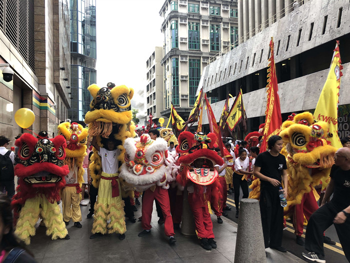 毛里求斯2020春节巡游热闹的龙狮队伍。(毛里求斯中国文化中心供图)