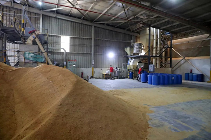 5月15日,在位于埃及米努夫省的新希望埃及有限公司,工人在鸡饲料存储车间作业。新华社记者 隋先凯摄