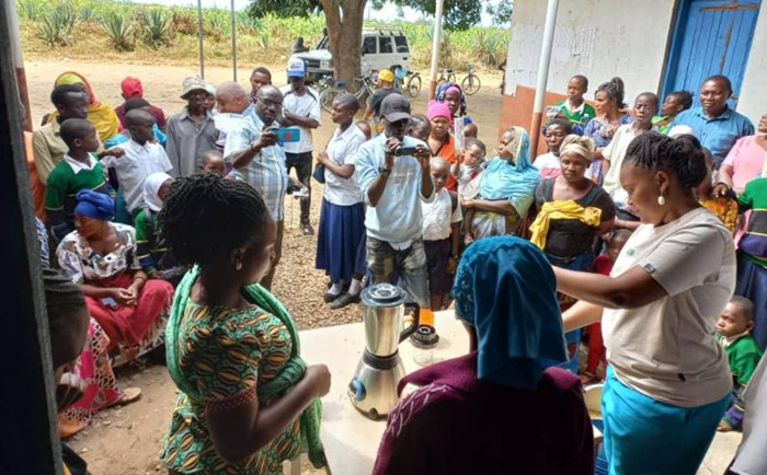 2022年6月24日,位于非洲东部的坦桑尼亚莫罗戈罗省柯泰特村,第一次收获大豆的村民们,正在技术人员的指导下,尝试各种豆制品的制作。