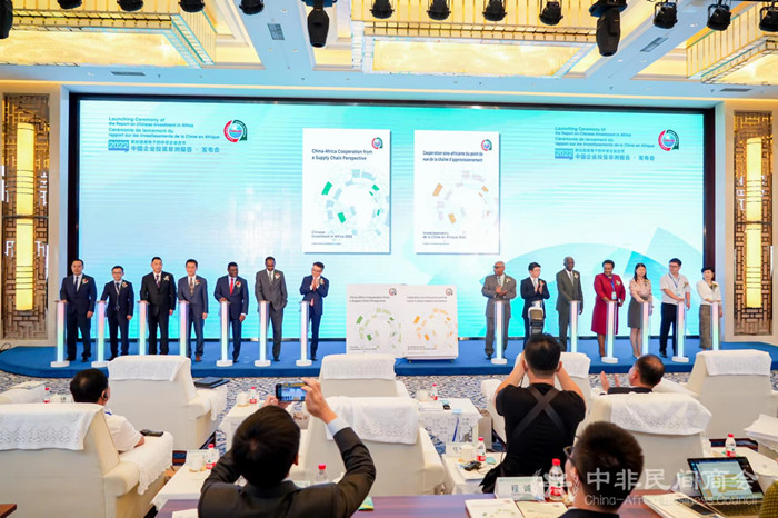《中国企业投资非洲报告(2022)——供应链视角下的中非企业合作》英文版和法文版在北京发布。(中非民间商会供图)