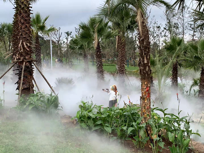 河岸绿色发展项目始终秉持人与自然和谐共生的设计理念,在设计之初就充分考虑埃塞当地自然情况,规划出15.08万平方米园林,打造天然户外氧吧。园林内有80余种植物,包括花卉绿植上百万棵、南洋杉等40余种当地珍稀树种5600棵。在建设期间,由于埃塞缺少专业绿化苗木公司,如何在有限的工期内解决绿植来源成为项目面临的棘手问题。