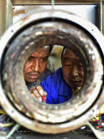 在人员培养上,公司充分考量当地雇员技术能力水平,为河岸绿色发展项目配备了成熟的培训机制。随着越来越多当地雇员具备了成熟的专业技能,中交一公局集团在当地赢得了“亚的斯亚贝巴市技工学校”的美誉。