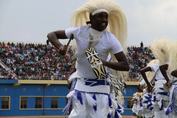 8月18日,在卢旺达首都基加利,卢旺达艺术家在总统卡加梅的就职典礼上表演舞蹈。