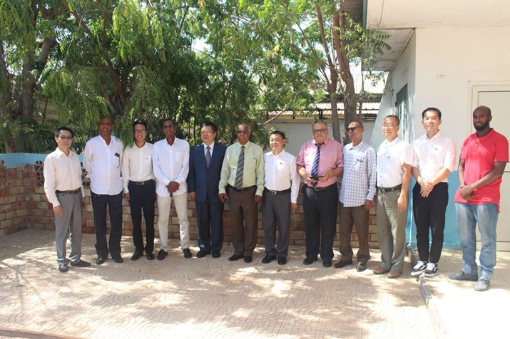吉布提农业、水务、渔业、畜牧与水产资源部长Mohamed Ahmed Awaleh(左六)会见中国援吉布提农业专家组(杨国权提供)