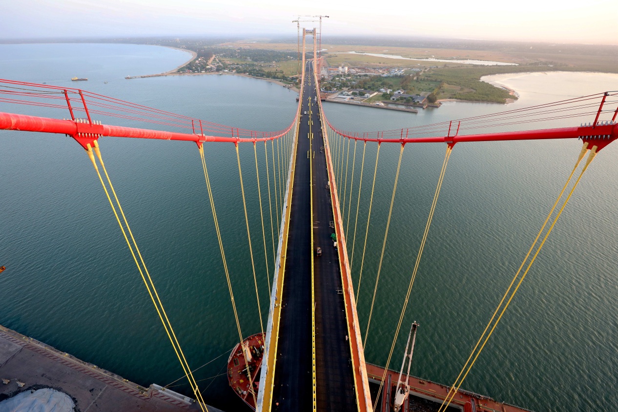这是2018年5月10日拍摄的中国援建的莫桑比克马普托跨海大桥(航拍照片)。(新华社记者 王腾摄)