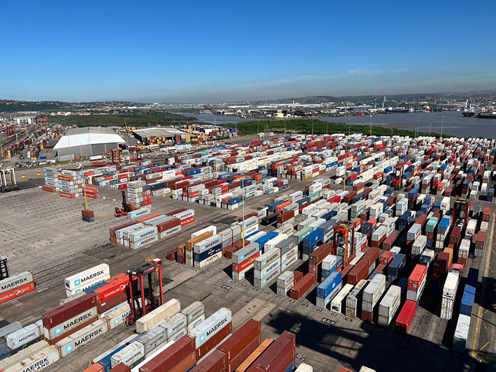 4月21日,南非德班港集装箱码头。金砖国家新开发银行参与合作的南非德班港现代化改造项目,旨在对德班集装箱码头进行扩建和现代化改造,以缩短船舶周转时间、增加港口吞吐量。(图片来源:新华社)