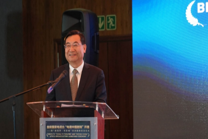 8月17日下午,由国家广播电视总局主办的金砖国家电视台“电视中国剧场”开播暨“新视界 新影像”视听中国非洲播映活动,正式在南非约翰内斯堡启动。中共中央宣传部分管日常工作的副部长、中国文化和旅游部部长胡和平,南非非国大第一副总书记莫卡尼亚内,中国驻南非大使馆公使李志刚,以及中国国务院新闻办公室、国家广播电视总局,南非金砖国家电视台和中南有关媒体同行出席了启动仪式。