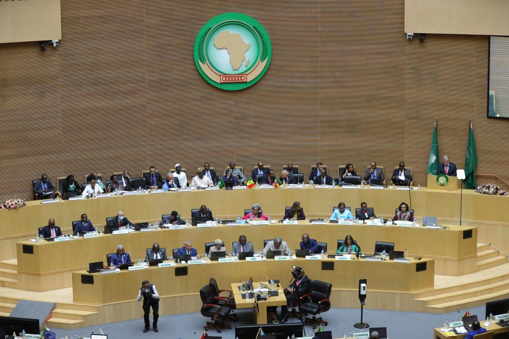 这是2月18日在埃塞俄比亚亚的斯亚贝巴拍摄的非洲联盟第36届首脑会议现场。(图片来源:新华社)
