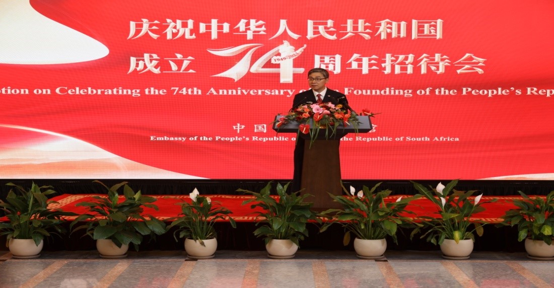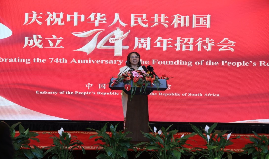 2023年9月22日,驻南非使馆举行招待会,热烈庆祝中华人民共和国成立74周年。驻南非使馆临时代办李志刚、南非政府代表旅游部长德利莱分别致辞。南总统府妇女、青年及残障部长祖马、非国大第一副总书记莫卡尼亚内等南党、政、军高层和工商、智库、媒体等友好人士以及在南中资机构和华侨华人代表500余人出席。