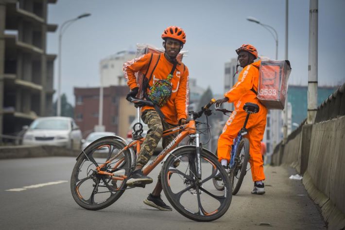 2022年7月19日,由中国企业参与投资的外卖公司beU delivery的外卖员在埃塞俄比亚首都亚的斯亚贝巴送餐。(图片来源:新华社)