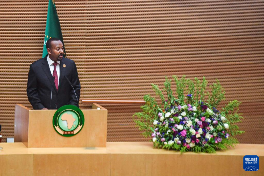2月17日,在埃塞俄比亚首都亚的斯亚贝巴,埃塞俄比亚总理阿比·艾哈迈德·阿里在开幕式上发言。(图片来源:新华社)
