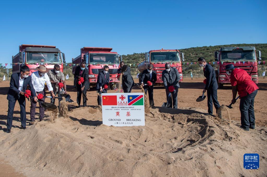 5月9日,纳米比亚首都温得和克拍摄的纳米比亚首都国际机场公路项目第三期工程开工仪式。 (图片来源:新华社)