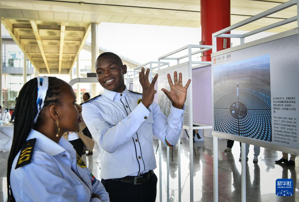 中非共建“一带一路”务实合作图片展22日在肯尼亚蒙内铁路内罗毕火车站开幕。此次展览通过30余幅图片多角度展现中非共建“一带一路”合作成果。